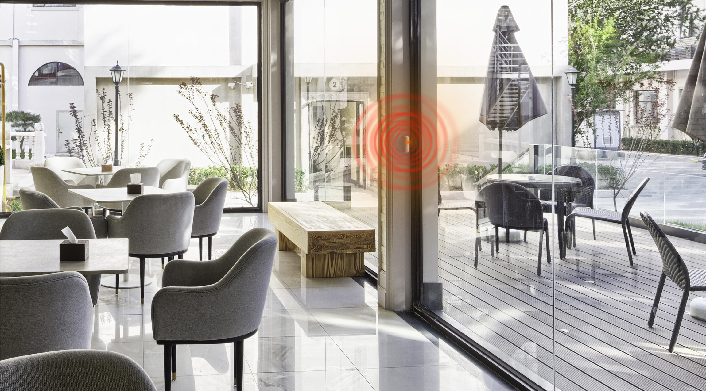 En kombination med glasbrudssensorer som lytter efter smadret glas vil give et endnu et højre sikringslag til virksomhedens glasfacader.