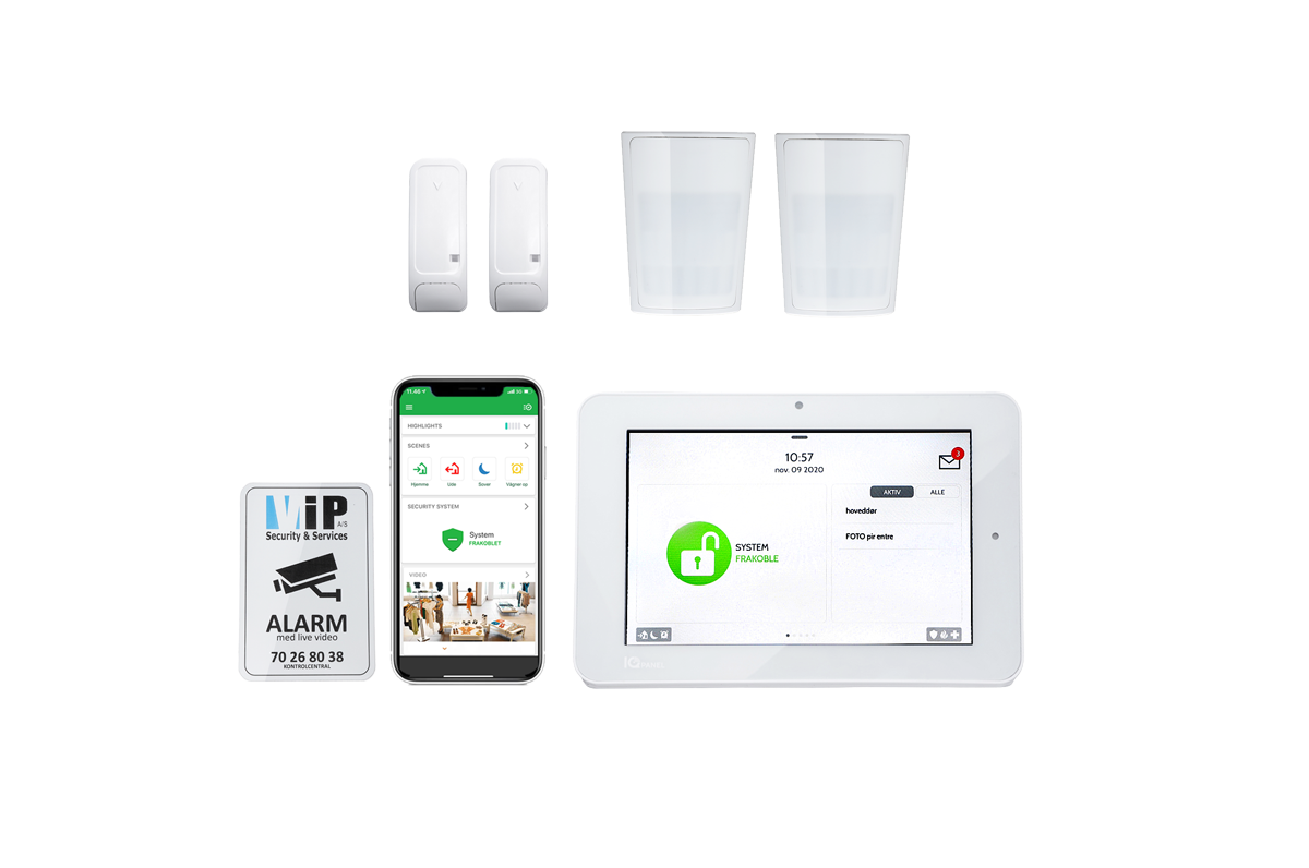 Her vises vores elegante smart alarm system som har utal af smarte og meget brugervenlige funktioner til mindre og mellemstore virksomheder. Alarm systemet kan senere tilsluttes kamera overvågning og adgangskontrol samt meget mere hvis ønsket er en total sikring af virksomheden.